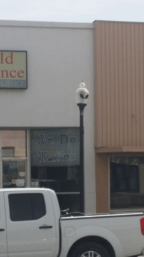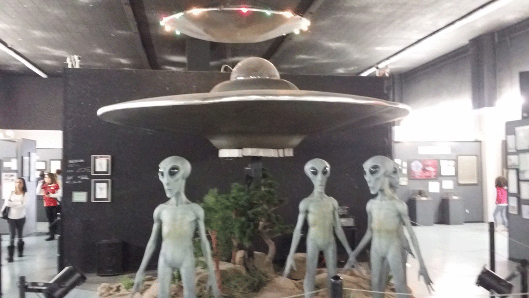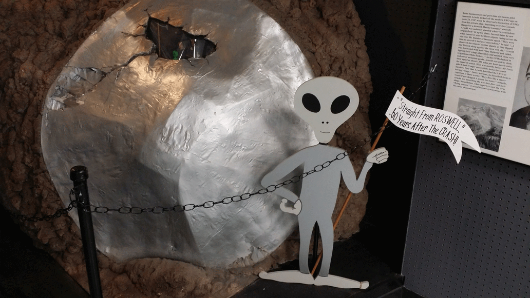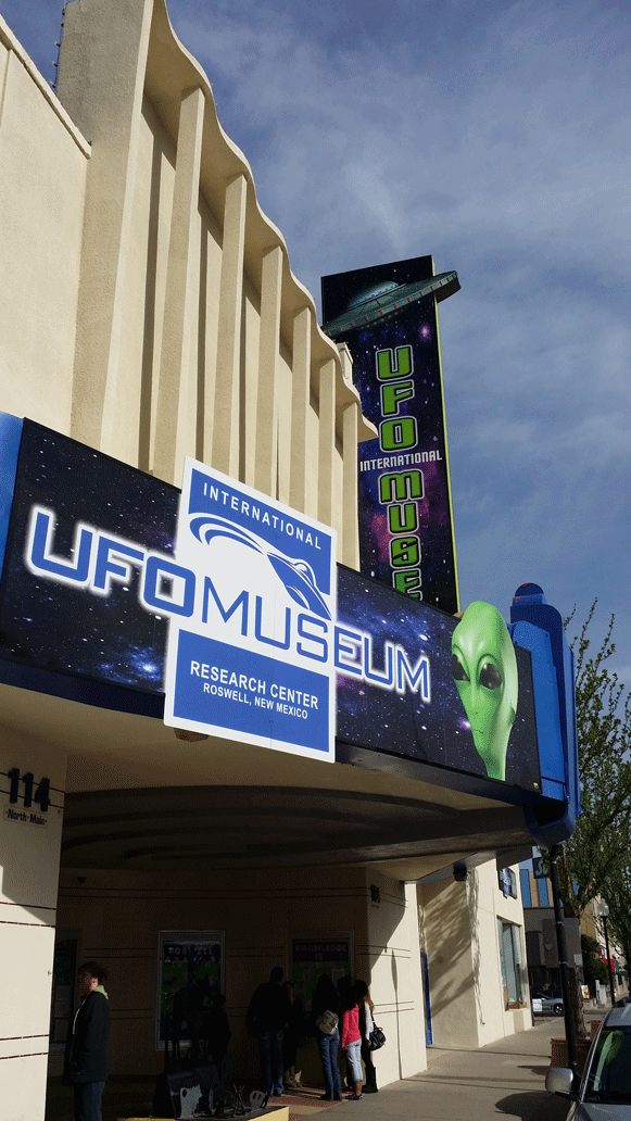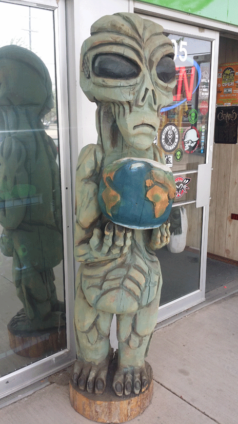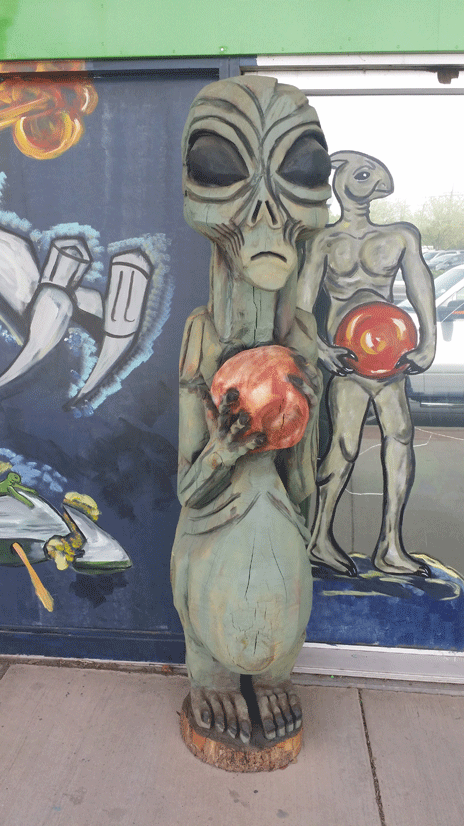 My throttle grip detached from the control yesterday so I found an Ace Hardware early in the morning and super glued it back together. It set right away and I left Ace to head "downtown" to check out the tourist traps and UFO museum. I parked the adventure machine on main street right in front of the UFO museum. The docents and staff were extremely nice and I did enjoy myself at the museum. I was fascinated by the stories of "Foo Fighters" seen by pilots in WW2. Especially since the same "Foo Fighter" phenomenon just came up in the news that morning. At the end of the day, all of the tales told were astonishingly elaborate, imaginative, and ultimately very entertaining.