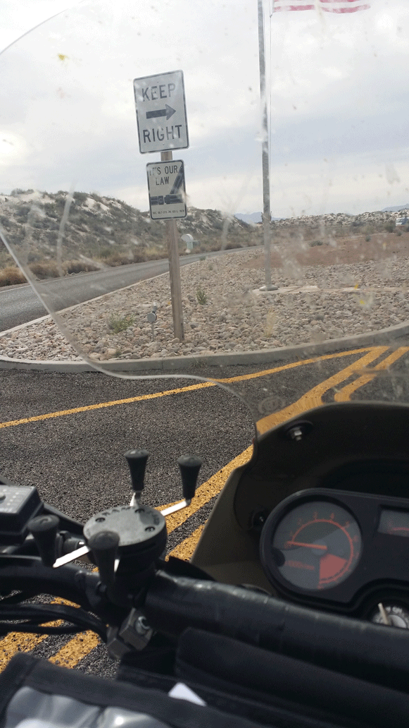 Only 30-45 minutes later, my KLR began overheating and then the righthand grip twisted right off the throttle conrol. While I was broken down on in the middle of the road, I would see the only other person in the New Mexico desert that day. A liquid-feed trucker that was driving down this rocky disaster pulled up next to me and asked if I needed help.