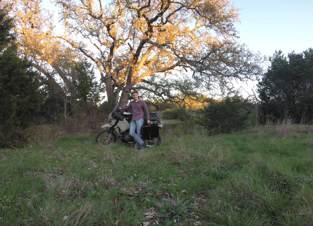It was a beautiful spring day in Texas: warm 80 degree weather, blue skies, and endless hilly green fields. The first hour was a blessing as I rode through Clifton, Valley Mills, Crawford, and McGregor, but then I reached the interstate and I realized that I may run into trouble over the next 4000 miles. On the country two-lane highways I was cruising at a comfortable 55mpg taking in the scenery scantly noticing the shortcomings of the adventure-mobile.