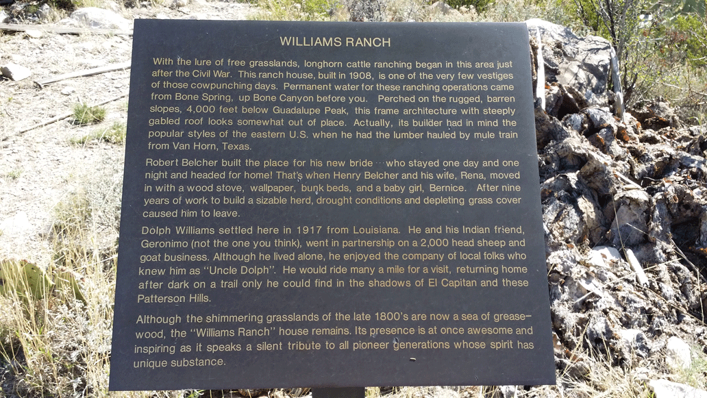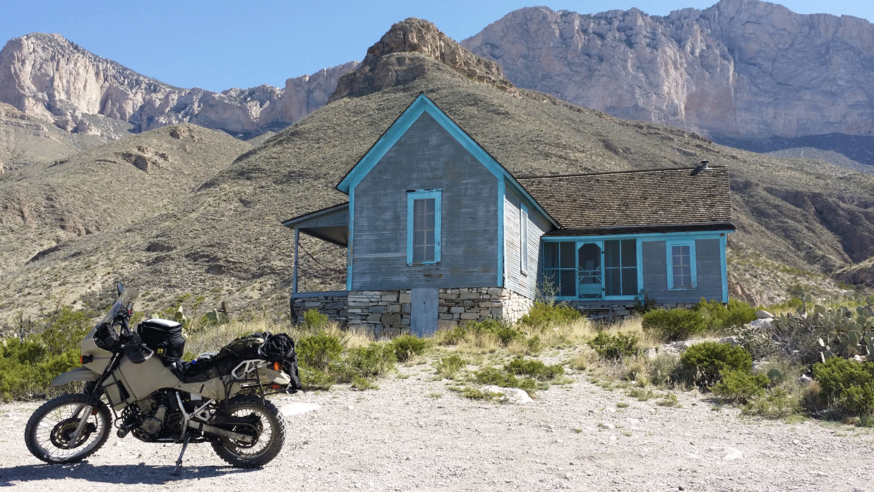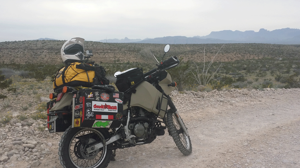 At the ranger station Jeff Bridge's twin brother gave me the key to the 4x4 road to Williams Ranch. I drove down the mountian, found the trail, went in, locked my pans to a sign inside the gate, and made tore down the 4x4 path. My KLR was a whole new animal without the luggage on it and tearing through the Guadalupe Mountains was a blast. Words don't do the views justice. I can't wait to compile all my GoPro videos from the trip (that's going to take some time in the edit room still...).