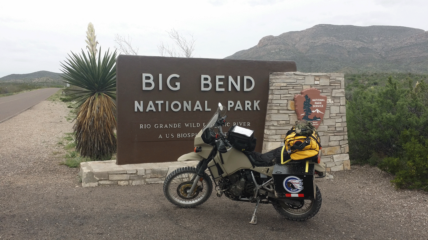 The trails out of Big Bend were ROUGH. I stalled while nearly overheated on a near cliff-face and was covered in mud from several water crossings. I managed to cling to the front brake and wait for the bike to cool down before the big-thumping 650 carried us over the crest without injury. I didn't mean to leave Big Bend so late and I was severely behind schedule despite being up at sunrise. The trails ate me up plain and simple. Luckily I would learn as the days go by.