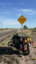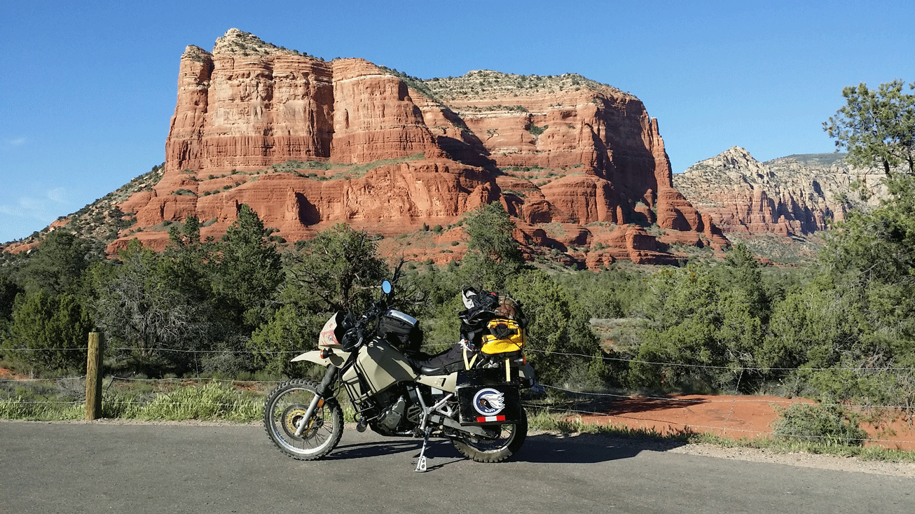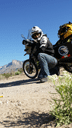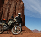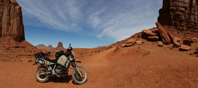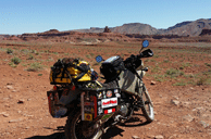 Hey, that's a weird looking motorcycle, it kinda looks like a dirt bike! I guess you could profile this type of cross-country ride as "Adventure Motorcycling." There is a rather loose definition for Adventure riding, and is mostly encapsulated in the first word of the phrase: "Adventure". ... But I'm going to come right out and say it, it has to do more with the look of the motorcycle. Honestly, you can have an adventure over mountain trails and paved roads on an old Harley or moped across the Australian Outback (yes, for real, it's been done before and is actually quite popular). An "adventure" (or "dual-sport") bike can be profiled simply by the way it looks -- a lot like a dirt bike, but more road-worthy.