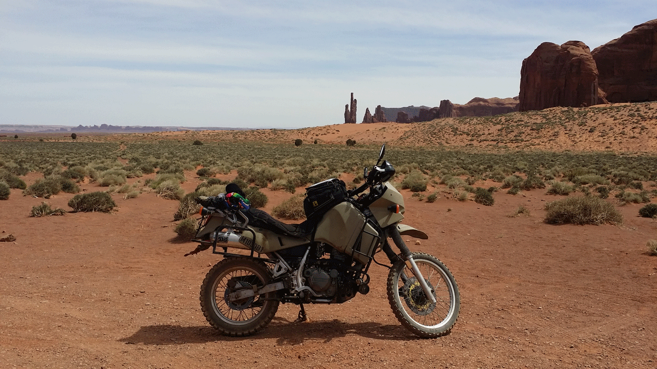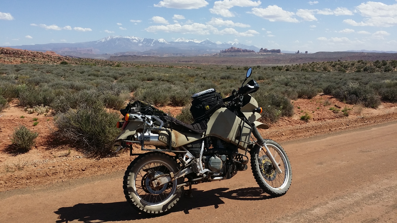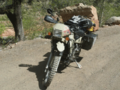 The motorcycle I'm riding is a Kawasaki KLR650 and can be called a "dual sport" motorcycle, which essentially means I can ride on and off road. A modified version (not much differently modified than mine) is currently used in service by the Reconnaissance Marines of the US Marine Corps. The KLR650 has a small, but fanatical following for its proven reputation. First of all, it is incredibly cheap; for less than a quarter of the cost of a brand new BMW adventure bike you can have what is essentially the AK-47 of motorcycles. The KLR650 is simple and reliable, yet rugged, sporting a thumping single-cylinder 650cc engine, and can found all over the world. Thanks to its popularity and commonness, replacement parts can be found much more easily for the KLR650 whether you are in Denali Alaska or Baja California or Tierra del Fuego.
